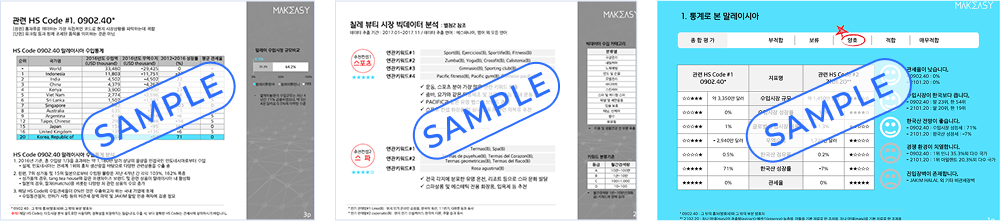 - HS CODE를 기반으로 한 타겟 국가 수입 규모 및 시장 동향, 이슈 분석을 통해 자사 제품의 시장성을 검증 할 수 있습니다.